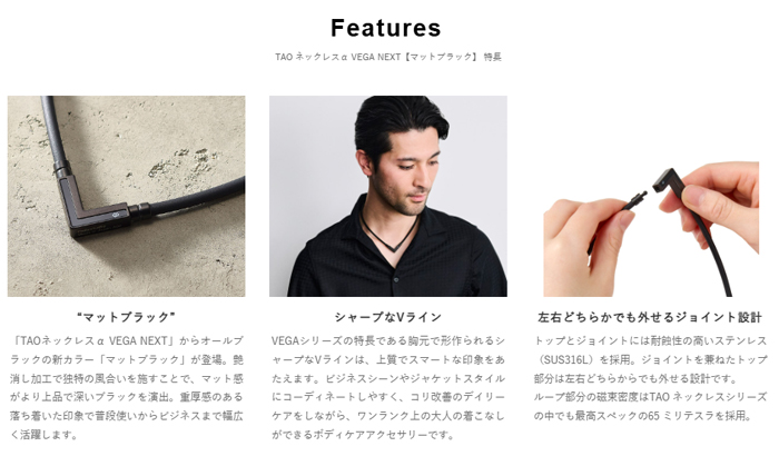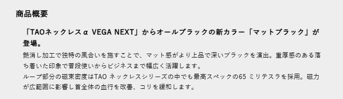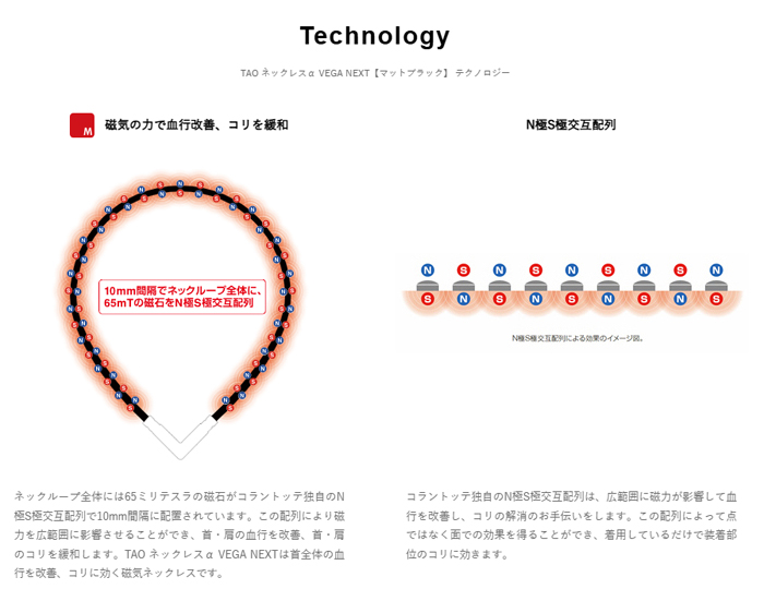 ループ部分の磁束密度はTAO ネックレスシリーズの中でも最高スペックの65 ミリテスラを採用。