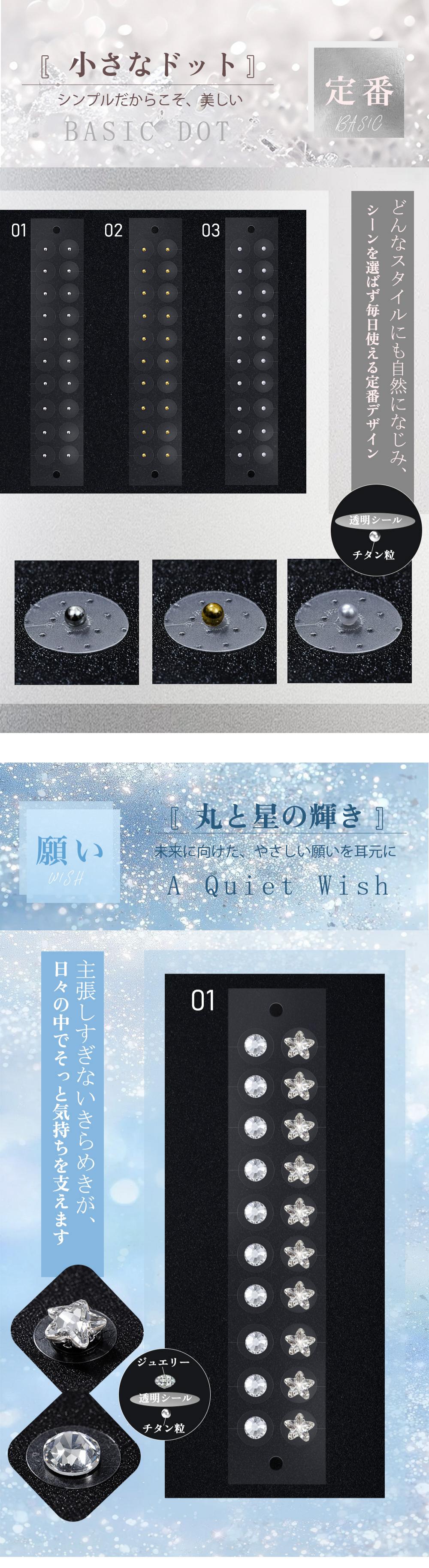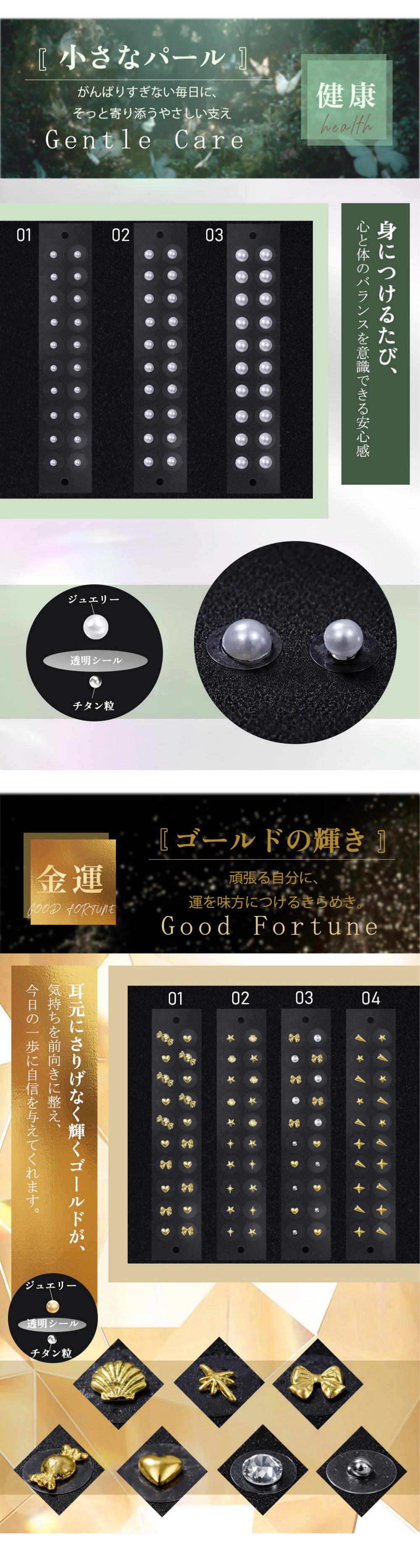 リスカイ新発売 耳つぼシール チタン透明シール 金粒 銀粒 耳つぼジュエリー