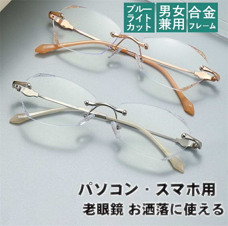 老眼鏡 おしゃれ 度数付きも レディース ブルーライトカット reading glasses 母の日 お年寄り プレゼント リムなし ファッション 金属 老眼鏡 レディース