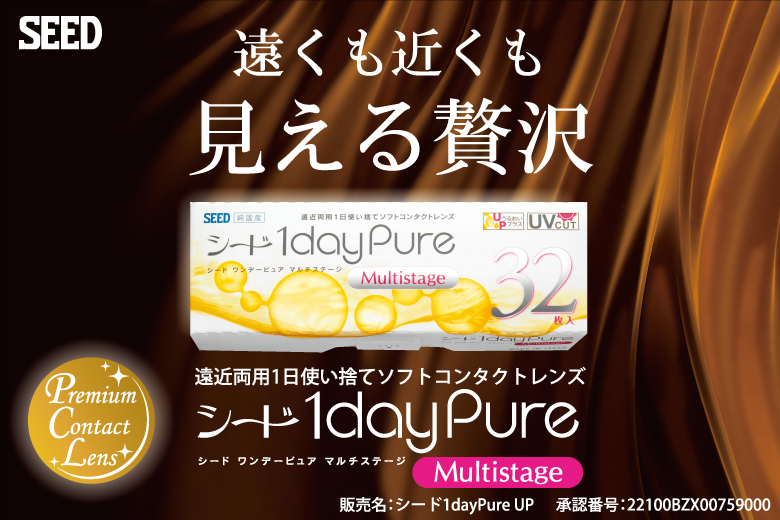 純国産の遠近両用1日使い捨てソフトコンタクトレンズ。