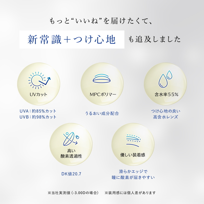 酸素透過係数(Dk値):20.7(メーカー実測値-3.00Dの場合)