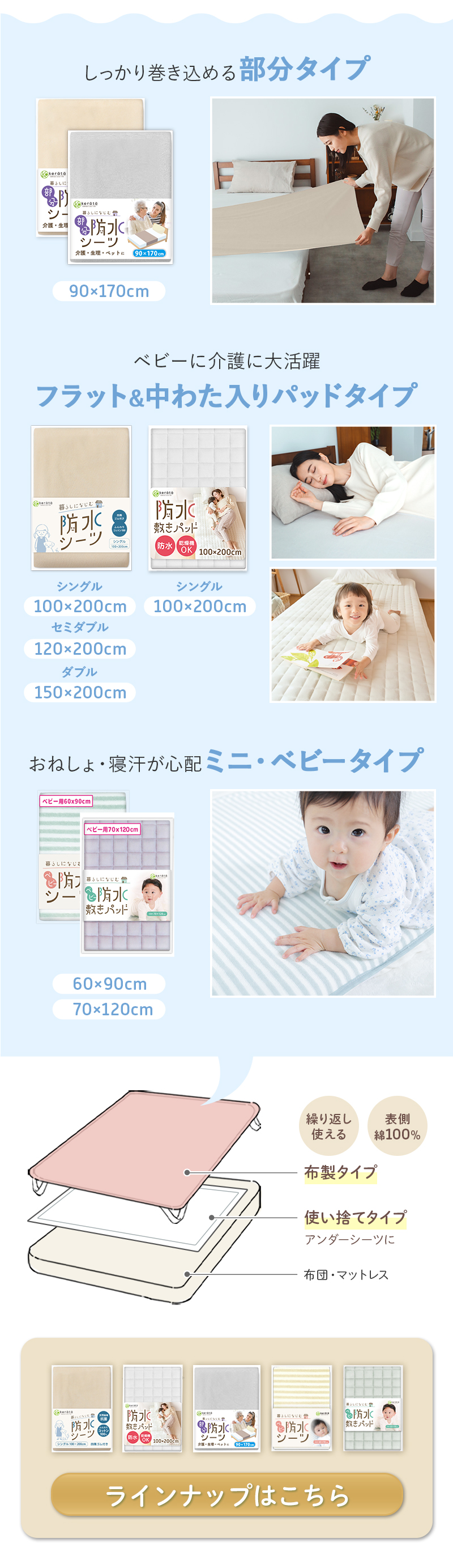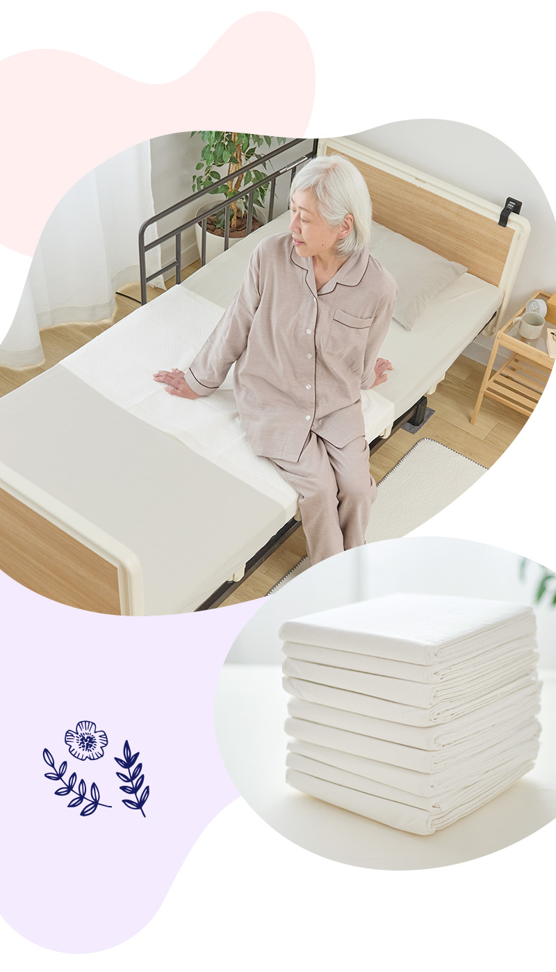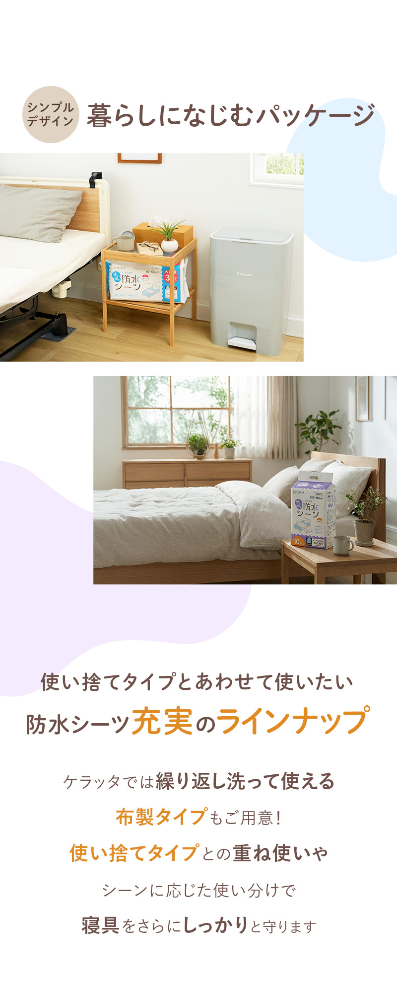 汚れたらサッと交換!失禁時やおむつ交換の漏れなど、汚れや臭いなどの衛生面が気になる場合もお洗濯不要で丸めて捨てるだけの使い捨て介護用防水シーツ。足浴や清拭やお食事などのベッドの上で行う介護のほか、赤ちゃんや子供のおねしょシーツ、生理時、猫や犬用のペットシーツ、車やソファのポイント使い、旅行先や防災アイテムにも♪5層防水で大人(高齢者)のおしっこ2回分(300ml)をしっかり吸収!おむつなどにも使われる高吸水性のポリマーが水分をしっかり吸収&キャッチして、すばやくゼリー状に固め逆戻りさせずお布団やマットレスを水分や汚れから守ります。