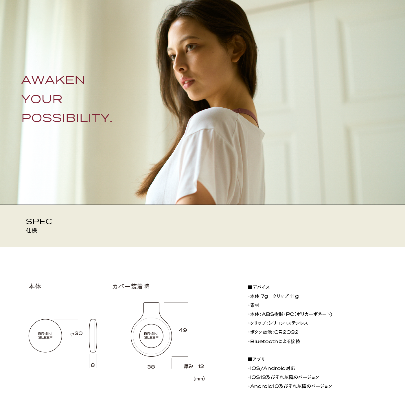 ブレインスリープ コインに付属されているボタン電池は動作確認用です。 開梱時に電池が消耗している場合がありますが、本体の異常ではございません。 新しい電池をお買い求めの上、交換してご使用ください。(コイン型リチウムイオン電池:CR2032)