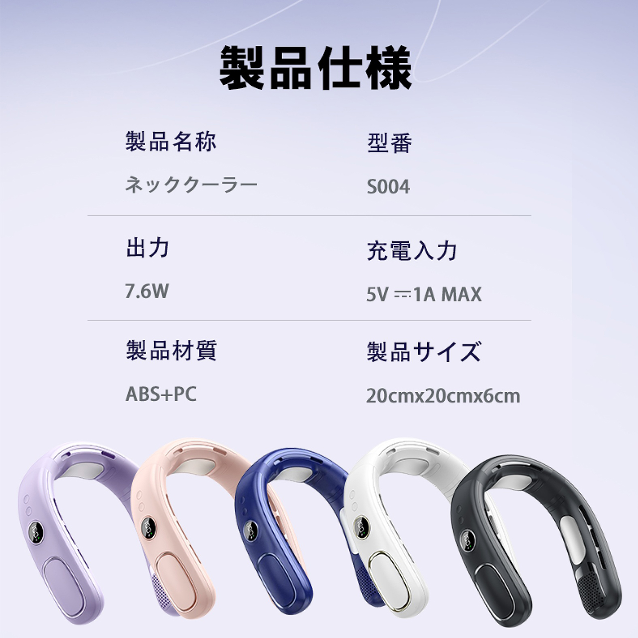ネッククーラー S004 首掛け 扇風機 羽なし ネックファン 小型 首かけ扇風機 羽根なし 静音 dcモーター ハンズフリー 充電式 軽量 冷風機 長時間