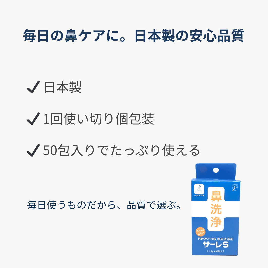 爆買 ハナクリーンS 専用洗浄剤 鼻うがい hanaclean 鼻洗い 花粉症対策グッズ サーレS 50包入 鼻洗浄器具 副鼻腔炎 風邪 鼻炎 生理食塩水