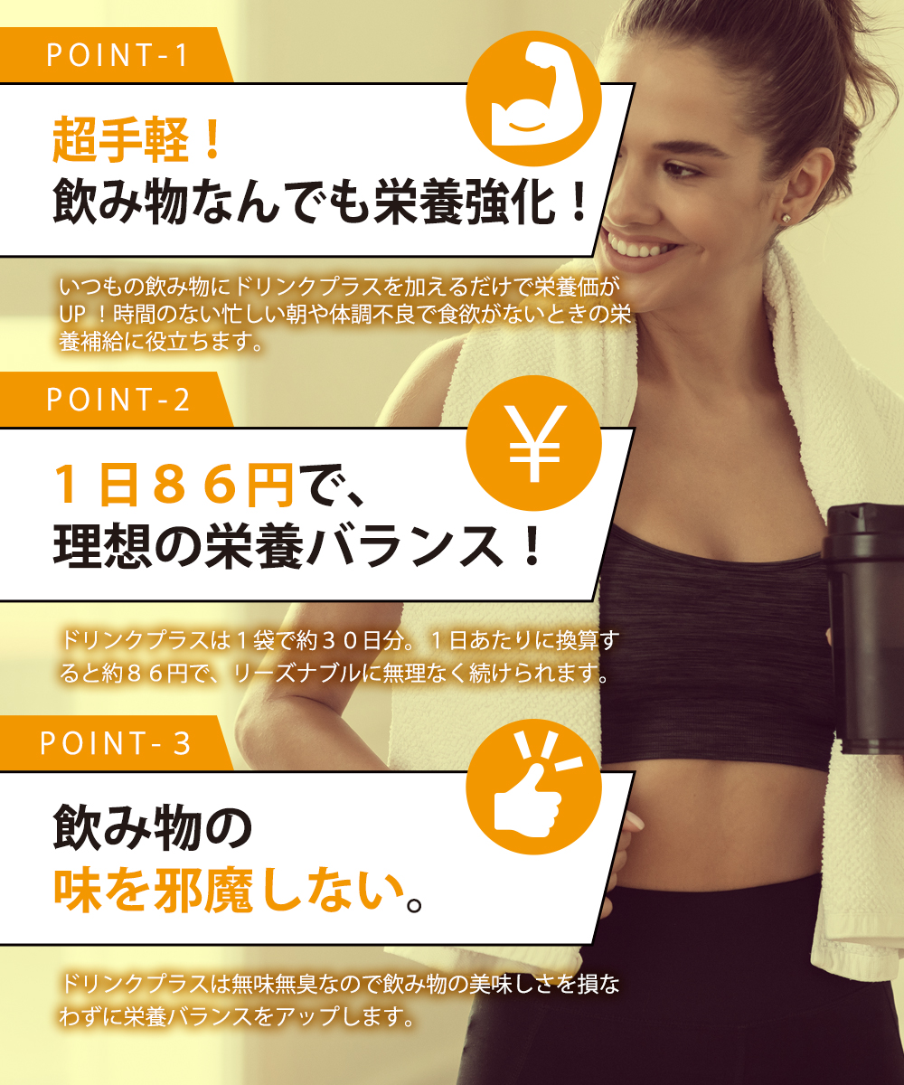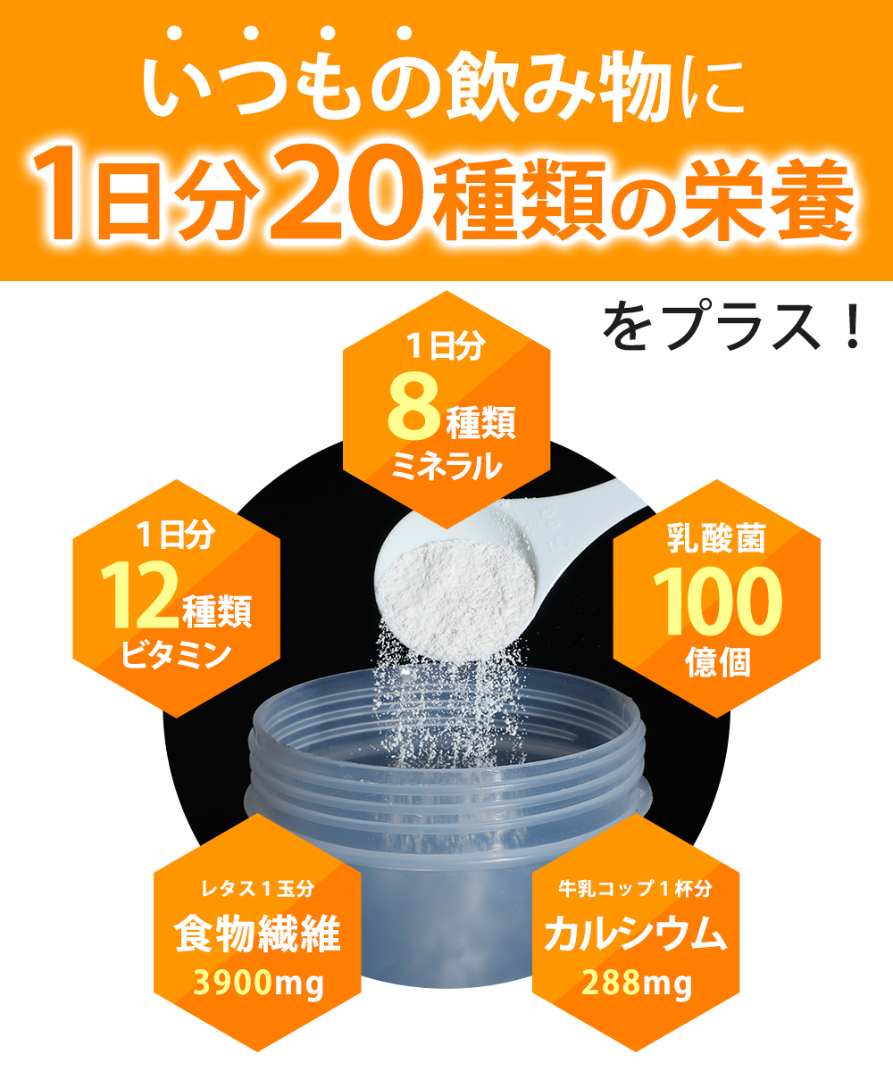 1杯で20種類の栄養素を1日分摂取できるため、手軽に栄養バランスを整えることができます。