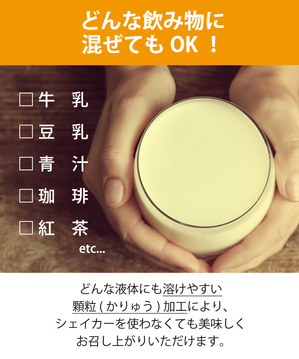 付属のスプーンすりきり1杯(約5.5g)をお好みの飲み物とよく混ぜてお召し上がりください。