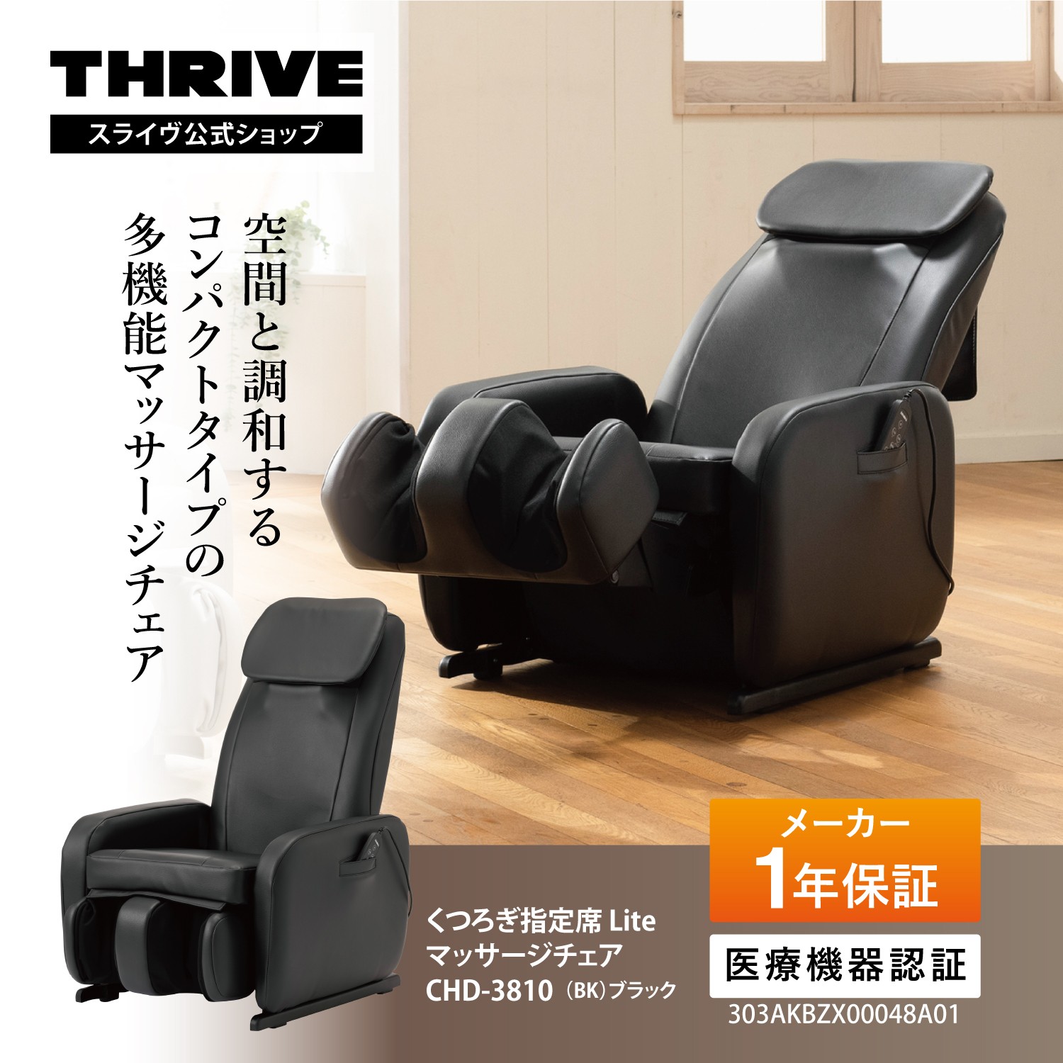 スライヴ マッサージチェア コンパクトな見た目でも充実の機能 くつろぎ指定席 Light CHD-3810 ブラック 管理医療機器