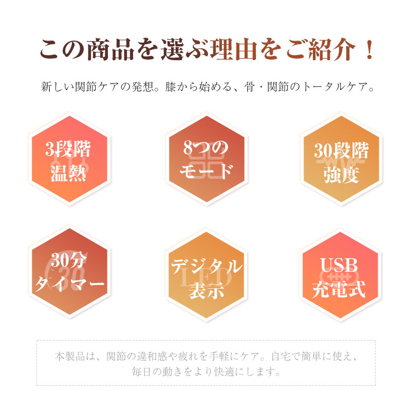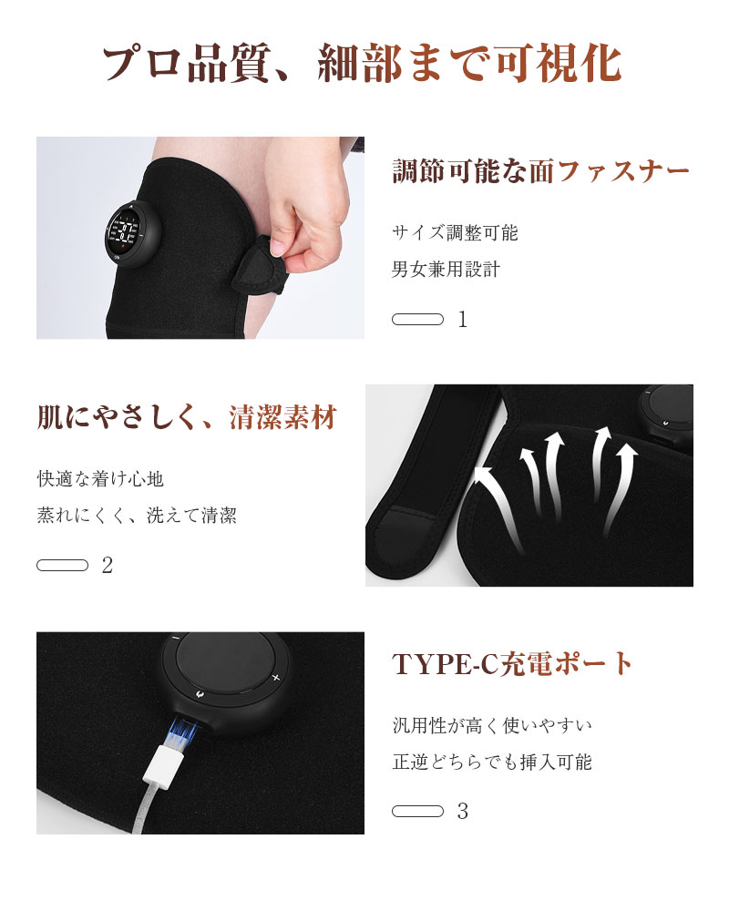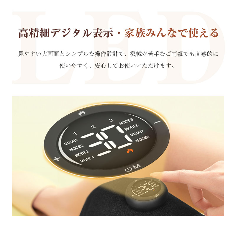 EMS 膝 サポーター 電気刺激 マッサージー 温熱 膝ケア 関節対策 ひざサポート マッサージャー 温感 介護予防 健康器具 リハビリ テクノロジー 家庭用 膝痛緩和 冷え対策グッズ ひざ楽になる 歩行 支援 寒さ対策 冬 必需品 ヒートテック スポーツ マラソン ランニング ジョギング トレーニング後ケア 回復 テーピング代替 8モード 豊富 強弱調整 30段階 自分に合わせ ピンポイント ツボ 押し だるさ/疲労回復 筋肉ほぐし コリ緩和 3段階温度調節 低温やけど防止 安全 自動オフ機能 四層構造 断熱 保温 発汗 吸湿 速乾 洗える 清潔 衛生 マジックテープ調整 フリーサイズ 男女兼用 軽量 薄型 装着感目立たない 服下着用 コードレス 充電式 タイプC USB 長時間使用 電池持続 操作簡単 ボタン 液晶画面表示 大きい わかりやすい お年寄り シニア 手軽 携帯 コンパクト 旅行 持ち運び 職場 どこでも 即効性 毎日使える 高品質 コストパフォーマンス 効果的 実用的 便利グッズ メンズ レディース ユニセックス おすすめ 敬老の日 冬 クリスマス 新年 元旦 正月 お正月 ハッピーニューイヤー 年末 年始 寒い時期 新年ギフト クリスマスギフト お歳暮 誕生日プレゼント 冬ギフト バレンタインギフト ホワイトデー 家族ギフト 20代 30代 40代 50代 60代 70代 80代 90代 男性 女性 ギフト 贈り物 実用的 喜ばれる 父 母 祖父母 家族 友人 同僚 ビジネス パートナー おじいちゃん おばあちゃん 中高年 シニア 若者 男性用 女性用 ユニセックスデザイン シンプル 贈答品 昇進 新生活準備 新社会人 お返し 入学祝い 卒業祝い 卒業記念品 就職祝い プレゼント 父の日 母の日 おすすめ 新発売 最新 送料無料 即納 在庫あり