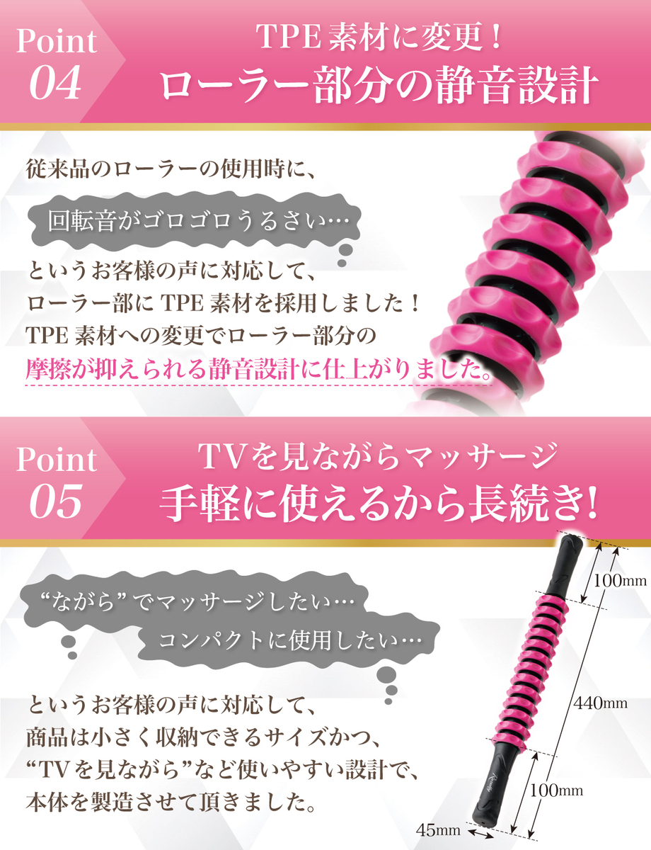 疲れた筋肉に コロコロ と当てて心地よい リラックス タイムを過ごして頂くために開発。