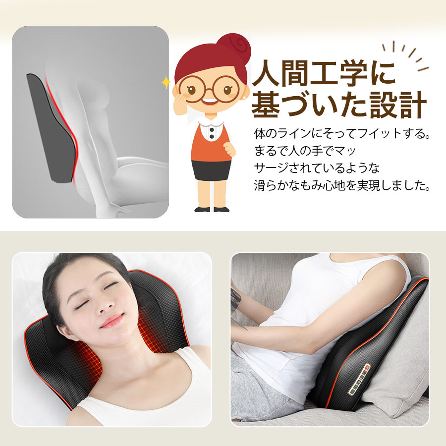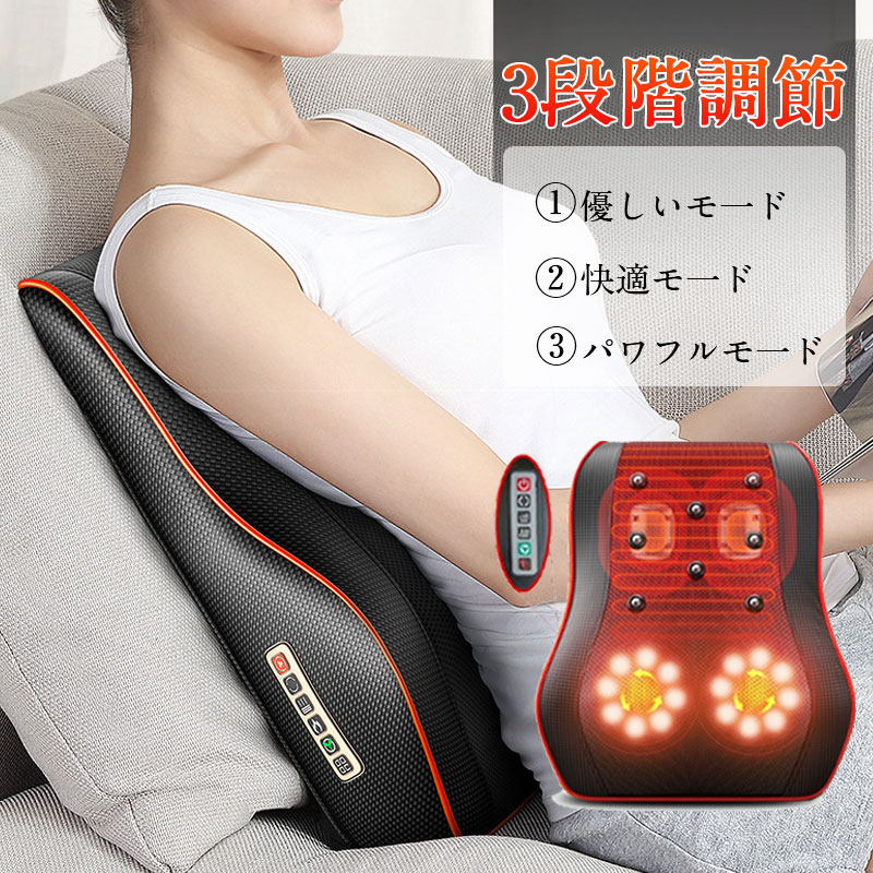 色々なシーンで活躍/三段階調節/ヒーター付/家庭・車載両用可能/コンパクト/簡単操作/3D揉み玉/温熱機能/タイマー/人体工学設計/多機能/通気性良い/変形しにくい/日本語説明書付