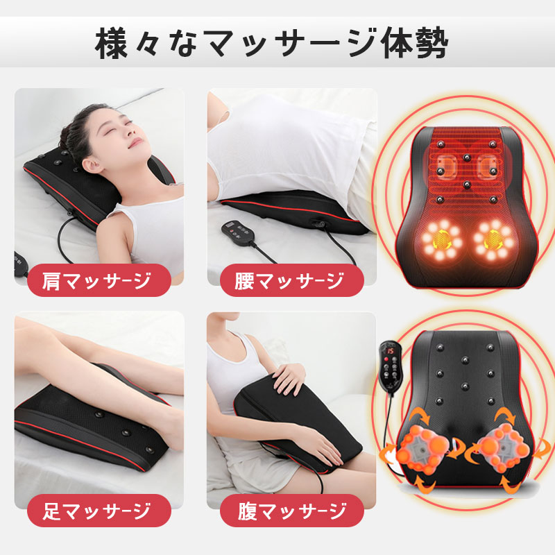 マッサージ部位:頸椎/肩/首/腰/背中/太もも/足/腹/ふくらはぎ