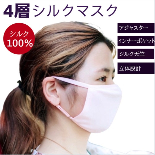 シルク マスク シルク100% 紐もシルク 敏感肌用マスク 息苦しくない インナーポケット シルク天竺 シルクジャージー マスク 洗える 保湿 絹マスク