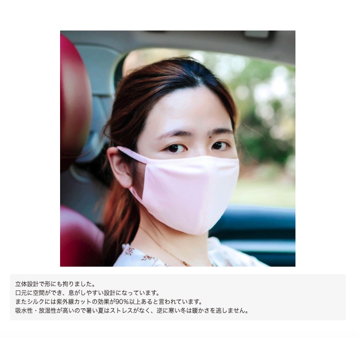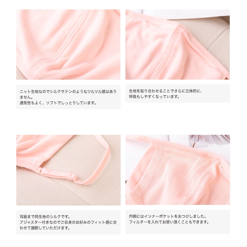 シルク100%の天竺なので肌触りも良く呼吸も楽なマスクです。