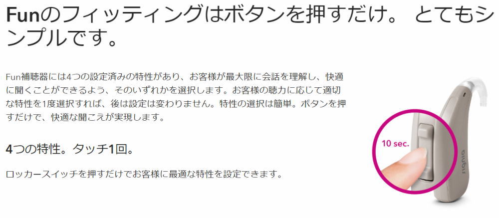 Fun補聴器には4つの設定済みのプリセットプログラムがあります。