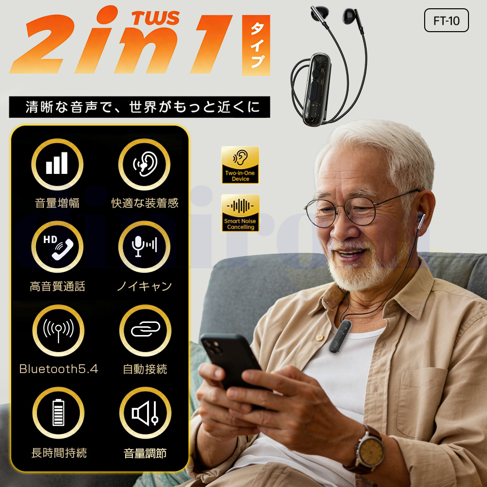 2026最新 集音器 イヤホン型 使いやすい クリップ型 デジタル両耳 片耳 ハウリング抑制 type-c充電式 Bluetoothイヤホン機能搭載 爆買