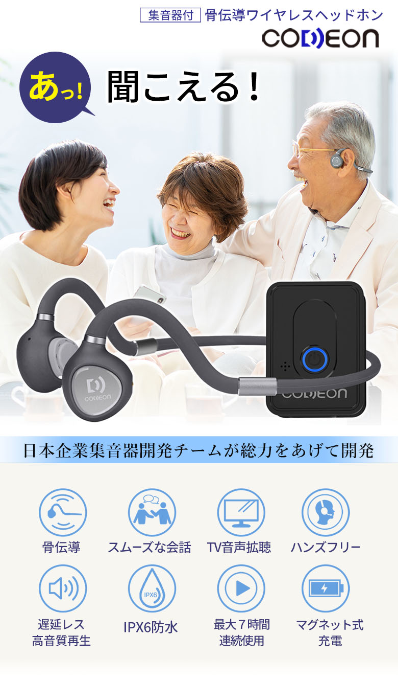 【爆買WEEK限定 10000円OFFクーポン配布中】集音器 骨伝導 高齢者 使いやすい ヘッドホン ワイヤレス コデオン CODEON 日本 開発 敬老の日 集音機